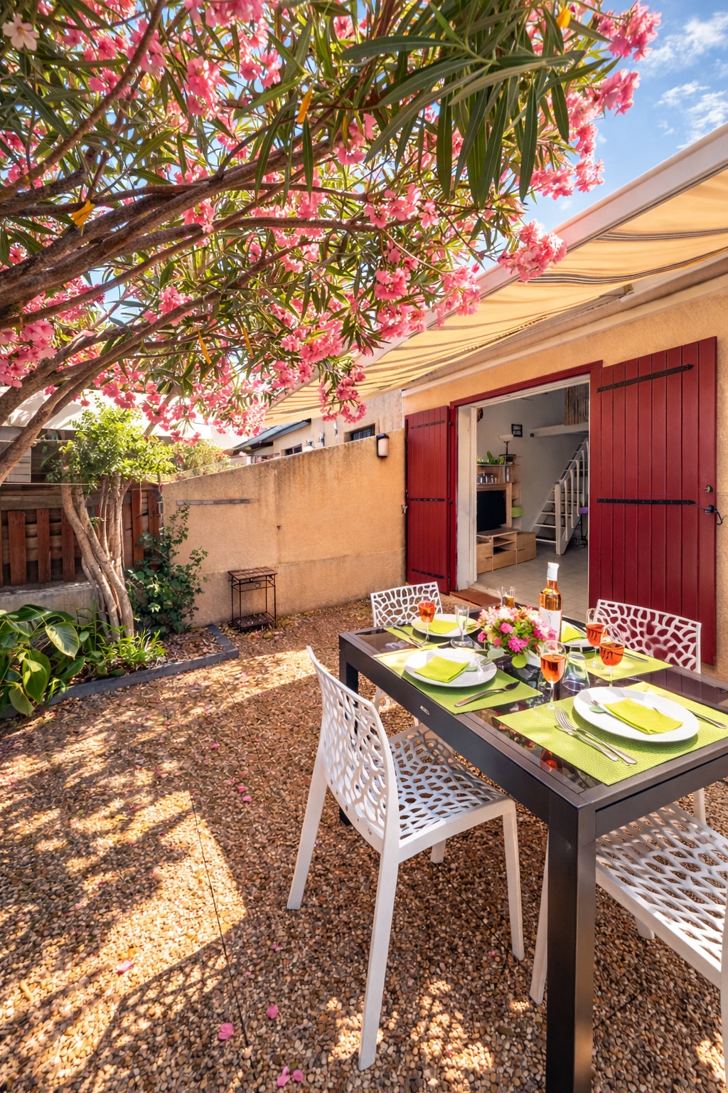 Belles prestations pour ce magnifique appartement en rez-de jardin. Logement pour 4 adultes et 2 enfants. Le logement se compose: séjour/ salle à manger, une cuisine ouverte 2 belles chambres de 15m2, 13m2 : 1 chambre literie double 160x200, 1 chambre literie double en 160x200 et 2 lits superposés 0.90x190 salle de bain et toilettes séparées Un beau jardin avec terrasse et Jacuzzi de grande marque. Climatisation dans toutes les pièces 1 cour fermée vous permet de stationner 2 voitures.