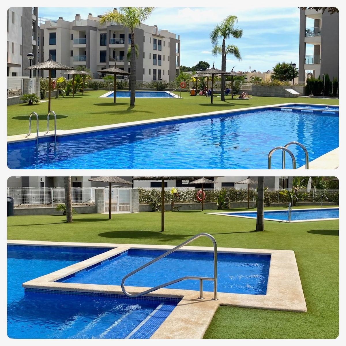 A well-equipped comfortable and homely apartment, we know you will love it just as much as we do. Newly furnished, 2 bedrooms , overlooking the pool with fantastic views of the holes 11 and 16 beyond. The Hacienda Riquelme resort is well established around the fantastic Jack Nicklaus designed golf course. There is a beautiful Club house with a bar, restaurant, supermarket, tennis courts, 19 pools and verdant gardens.