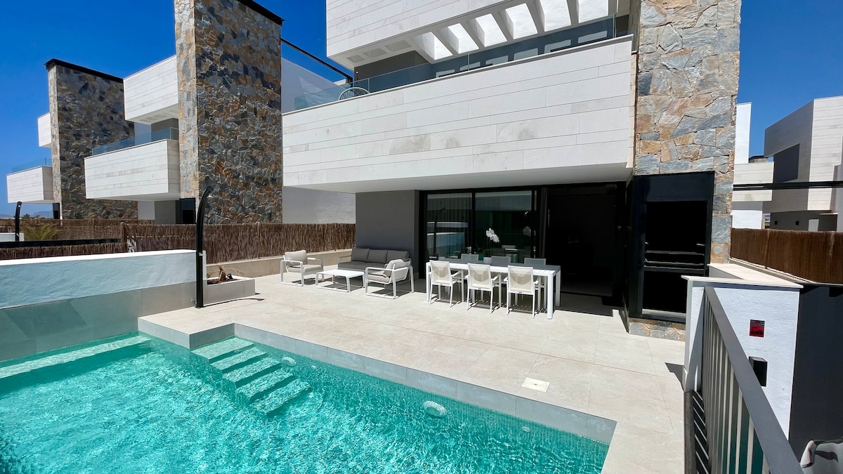 Early booking offer: Guests who book at least 6 months in advance receive a 20% discount! Exclusive Villa with Pool & Jacuzzi – Perfect for You! 🏡☀️ This luxurious villa in Santiago de la Ribera was designed with you in mind! A heated pool, jacuzzi, summer kitchen, and spacious terraces ensure your ultimate comfort and relaxation. Enjoy outdoor cooking, a fun game of foosball, and the proximity to Mar Menor Beach.❤️ 📅 Book now and soak up the Spanish sun! ☀️