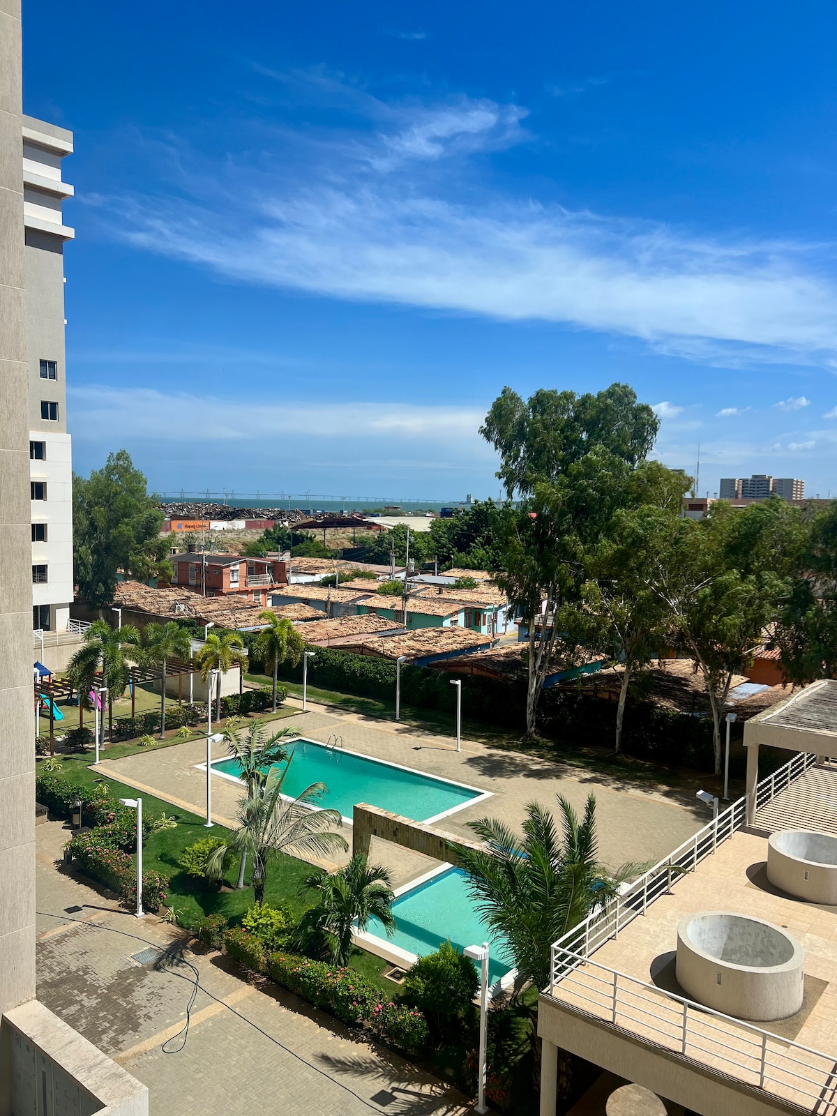 Bienvenido a Maracaibo. Disfruta de nuestro cómodo, amplio y tranquilo apto. Beneficios: Cocina equipada, sala - comedor, 3 habitaciones y 2 baños. Todas las áreas con AA. Estacionamiento privado. Transporte publico al salir del apto. Electricidad continua (sin cortes) WIFI rápido. Ubicación privilegiada Excelentes vistas del centro de la ciudad. Farmacia, Plazas, Parque, Supermercados, Iglesias a pocos metros. 10 min de la pista hielo más grande de Vzla Traslado aeropuerto (valor adicional)