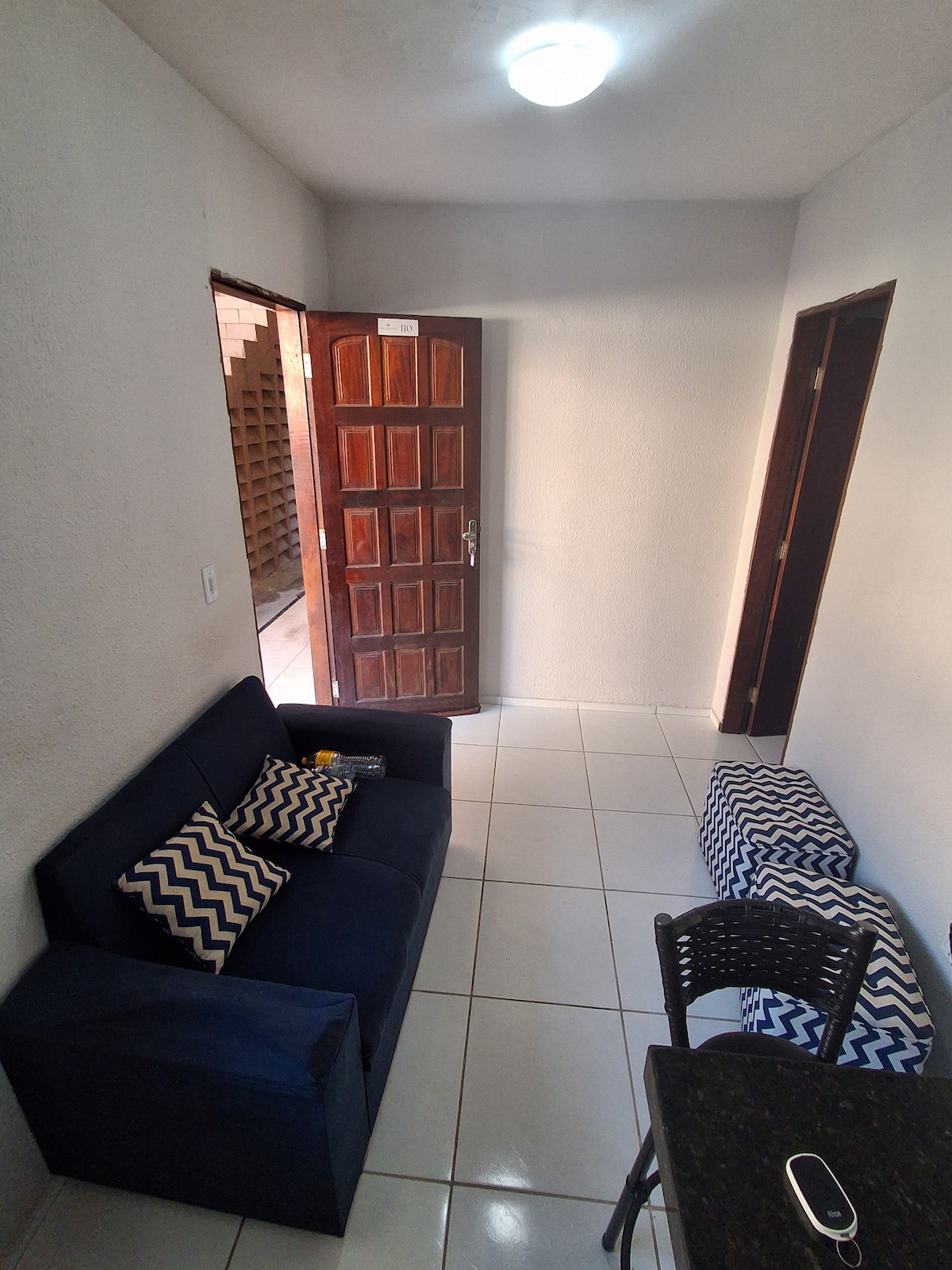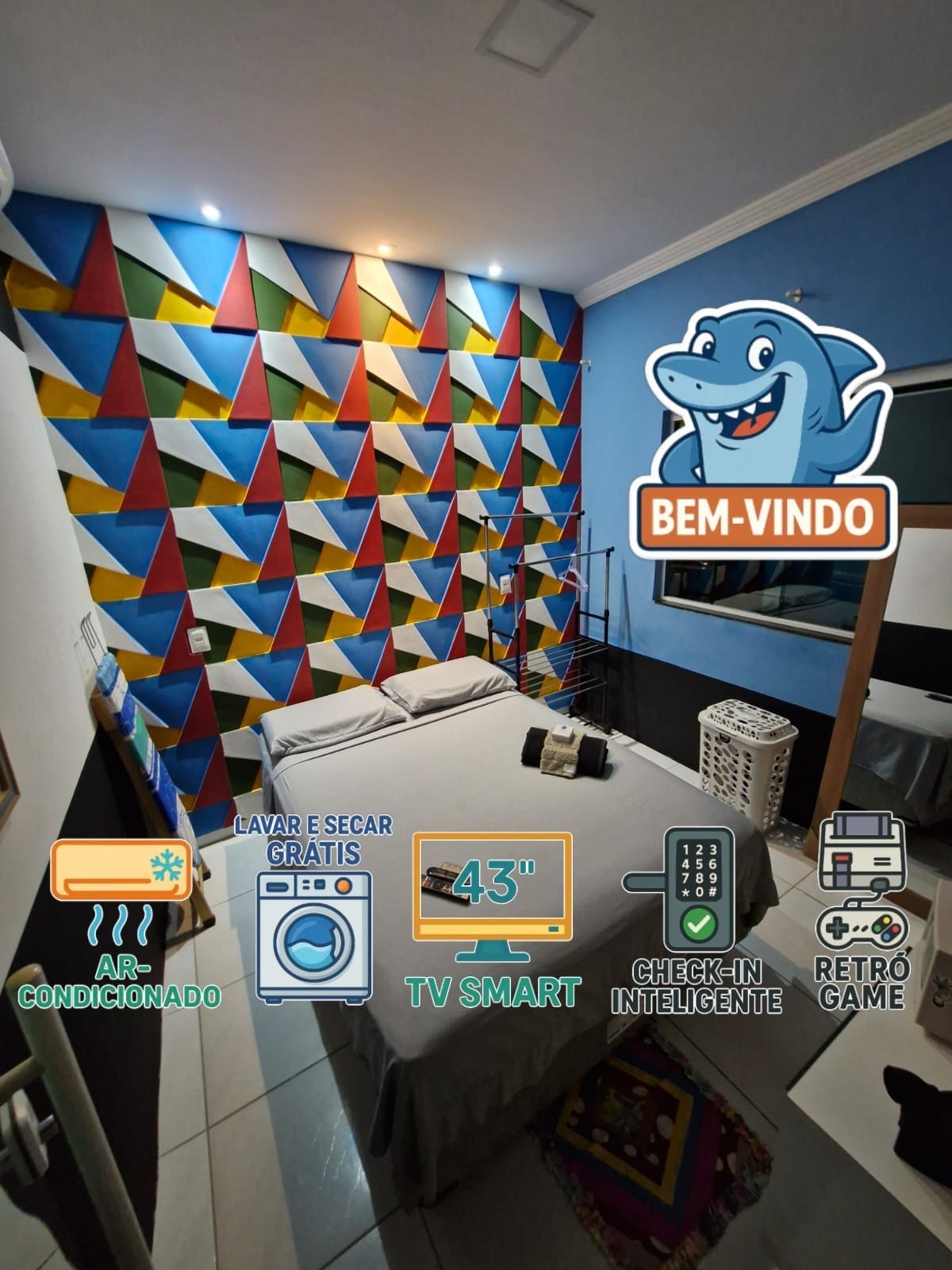 Compact and complete house in Maracanaú, perfect for rest or work. It offers 1 bedroom, integrated living room and equipped kitchen, bathroom, and outdoor area. Air conditioning, fast Wi-Fi, Smart TV, and garage (check availability). Quiet neighborhood, close to markets, pharmacies, and public transport. 1km from North Shopping. Easy access to Fortaleza. Ideal for couples or business trips. We accept monthly rentals for companies. No additional discounts offered. No pets allowed.