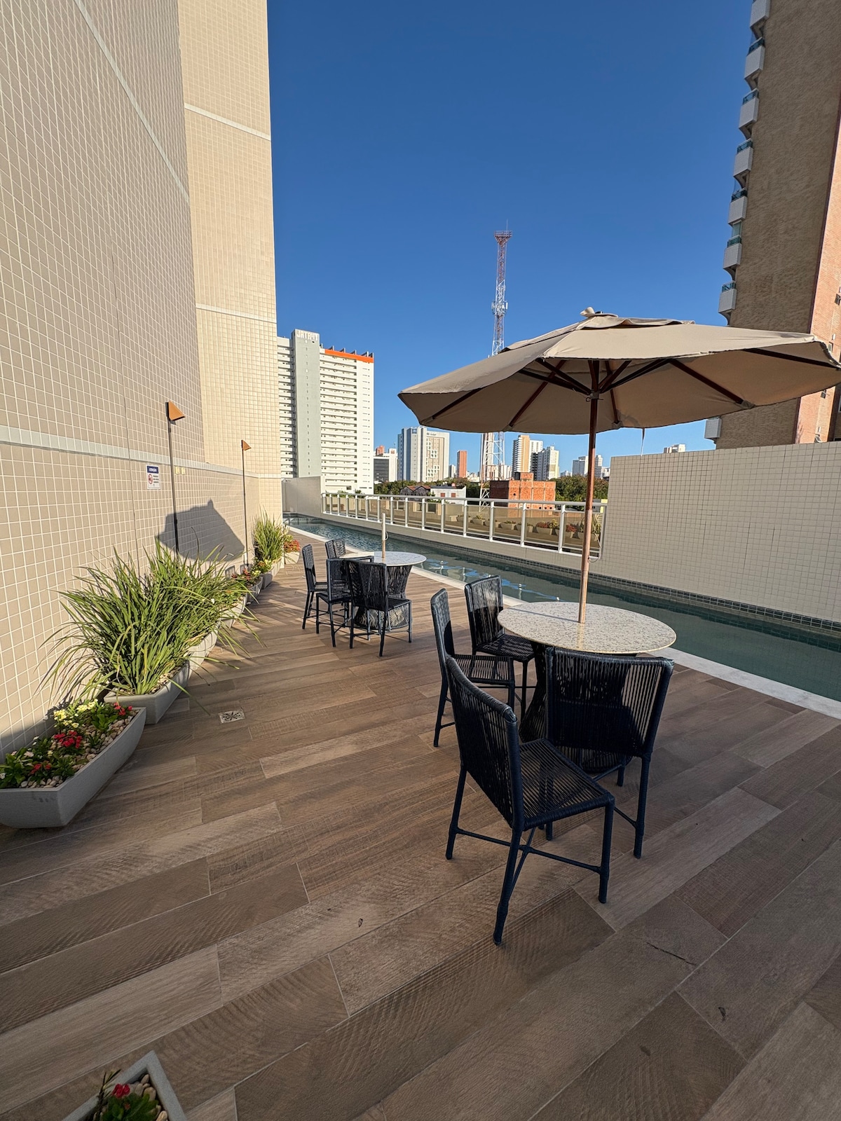 Studio a poucos metros da beira-mar, perto dos principais pontos turísticos de Fortaleza. Portaria 24h, Academia completa, Lavanderia, Coworking, Mini Mercado, Piscina com borda infinita na cobertura /jacuzzi aquecida, Rooftop com vista da cidade, salão de festa na cobertura, biblicleta e patinete compartilhados, pet wash, restaurante e ponto de carro elétrico. O imóvel possui um quarto integrado com a cozinha e banheiro privativo (com 26 m). Tenha uma experiência única na capital cearense!