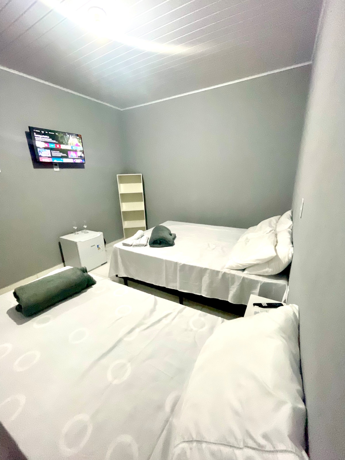 Apartamento luxo, bem decorado, compacto e muito aconchegante. Com tv acabo, Wi-Fi, cama queen em um quarto, cama casal no outro quarto, ar condicionado nos dois quartos,tv no quarto, chuveiro quente... tudo isso em uma excelente localização, no centro da cidade e há 200 metros da praia.