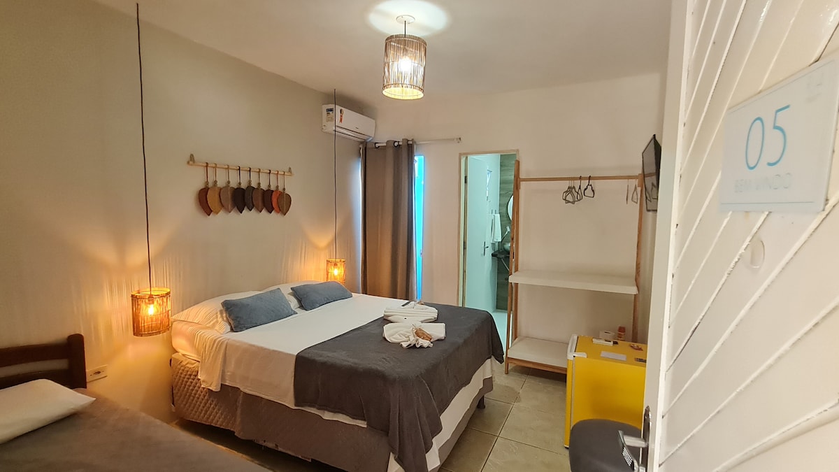 Suítes com ar, TV, frigobar, chuveiro elétrico e WiFi no centro de maragogi a beira mar