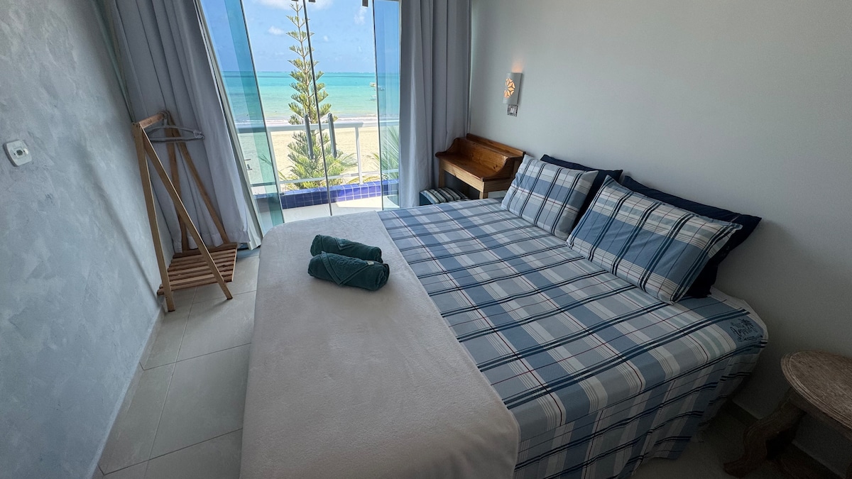 Loft à beira-mar na praia de Maragogi com localização exclusiva, 1 quarto a beira-mar com ar-condicionado, 1 banheiro social, 1 suite com ar condicionado, cozinha americana equipada e sala integrada SEM ar condicionado, área de serviço, ampla varanda com vista panorâmica para o mar, área de lazer externa com chuveiro e acesso direto à praia. Apartamento no 1° andar, 18 degraus,acesso APENAS pela escada. NÃO POSSUÍ ELEVADOR! NÃO POSSUÍ GARAGEM NA PROPRIEDADE!