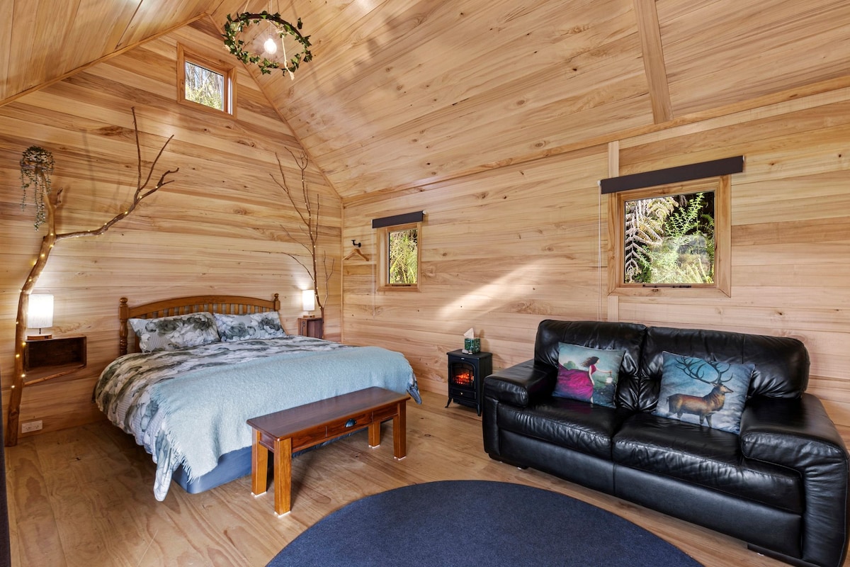 Welcome to our peaceful cabin, a hidden gem nestled among native trees and overlooking a sunny clearing on our working farm in a tranquil valley. Just a 5-minute drive from the entrance to the stunning Abel Tasman National Park and its golden sandy beaches, this retreat offers the perfect blend of relaxation and adventure. After a day of swimming, kayaking, or hiking, unwind on the deck with a refreshing drink, enjoy a hot shower, and settle in for a restful night’s sleep in this quiet oasis.