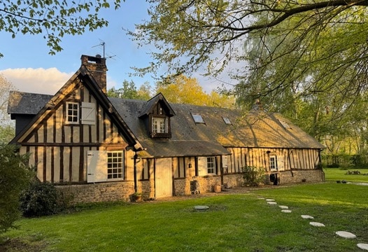 Chaumière normande traditionnelle du XVème siècle à colombages, couverte en chaume, en excellent état, disposant de 9 couchages et de 5 salles de douche dont une avec baignoire. Grandes cheminées d'époque. Grand terrain (plus d’un hectare) et vue exceptionnelle sur le Marais Vernier Piscine (10 m sur 4,5 m), avec toit amovible Terrain de boules Grand trampoline 5 vélos à disposition A 170 km de Paris A 20 km de Honfleur