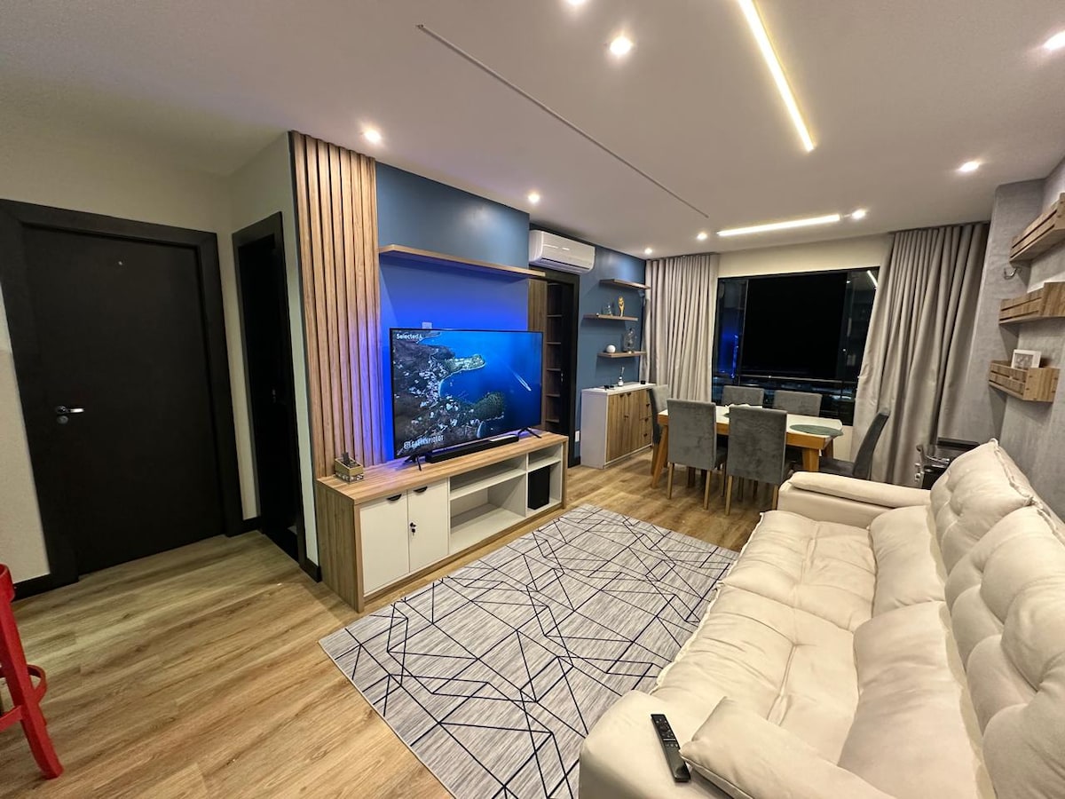 AP 1/4 moderno, aconchegante, em local seguro próximo de supermercado, shopping, bares/restaurantes, pontos turísticos andar alto, com vista, edifício com 2 piscinas, academia, hidro, sauna INCLUSO -Roupa de cama e toalhas - 1 vaga garagem - Cozinha completa - Lava louças - Maquina lava e seca roupas - Smart TV 65" c/ Netflix - Wifi - Alexa (Automação Residencial) - Cafeteiral Oster primalatte - Churrasqueira elétrica -Ar-cond no quarto e sala - Ferro de Passar - Secador