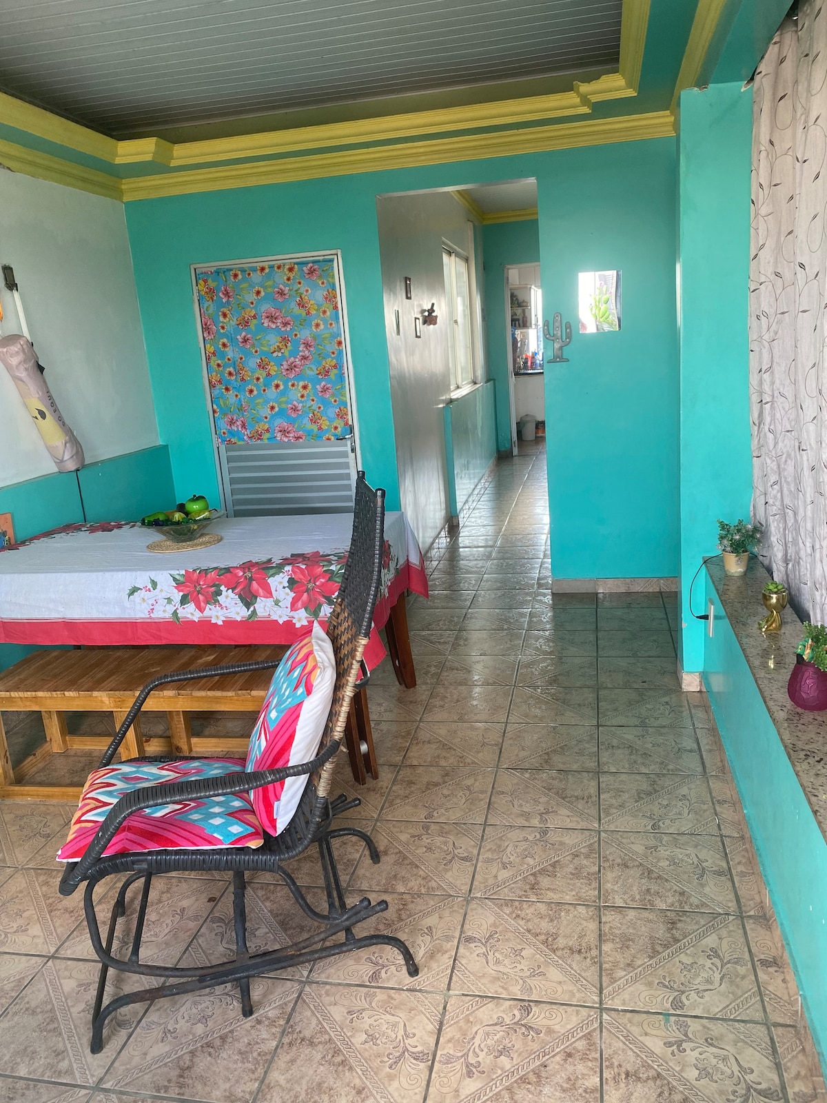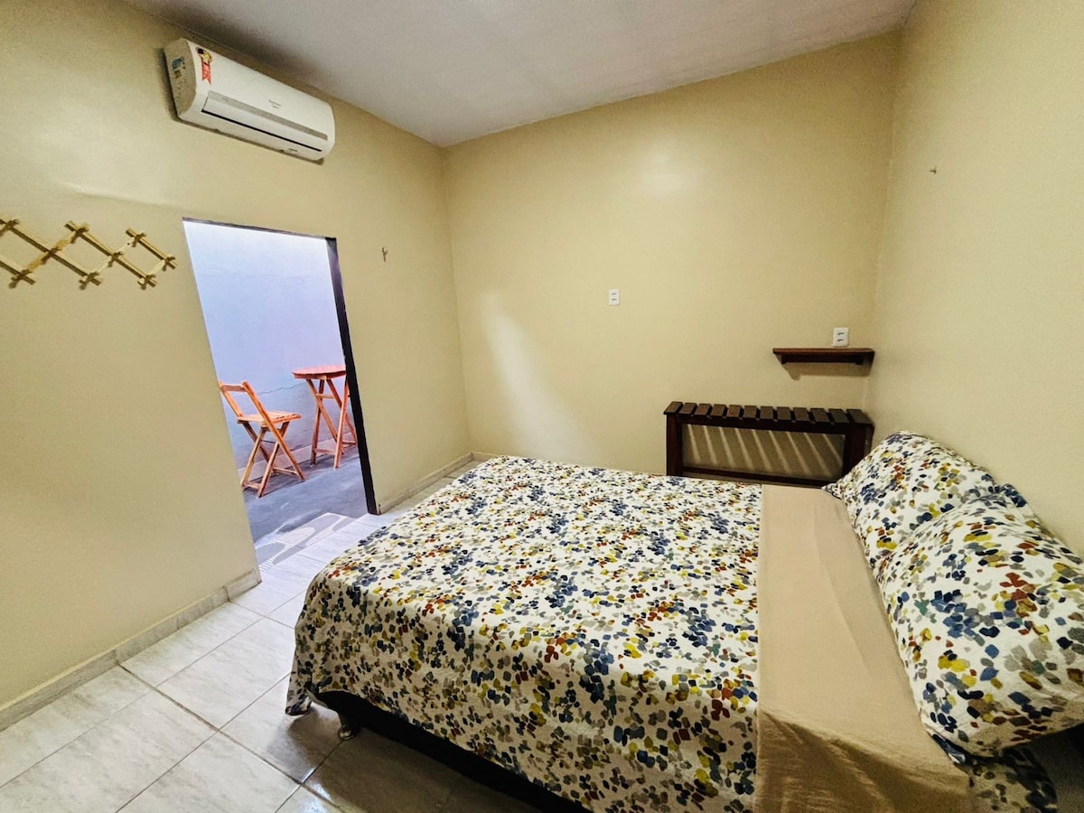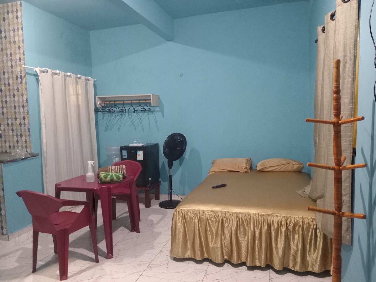 Abrace a simplicidade neste lugar tranquilo e bem localizado. Ambiente familiar. A 10 min do Aeroporto Internacional de Belém e do Hangar Centro de Convenções. Restaurantes (churrascaria, sushi, sanduícheria artesanal, pizzarias e esfirraria), sorveteria, doceria, inclusive chocolateria famosa, farmácias e lavanderias, barbearias e salões de beleza próximos. Tudo o que você precisa a poucos metros daqui. Ambiente com quarto, cozinha, banheiro privativo e área de ventilação.