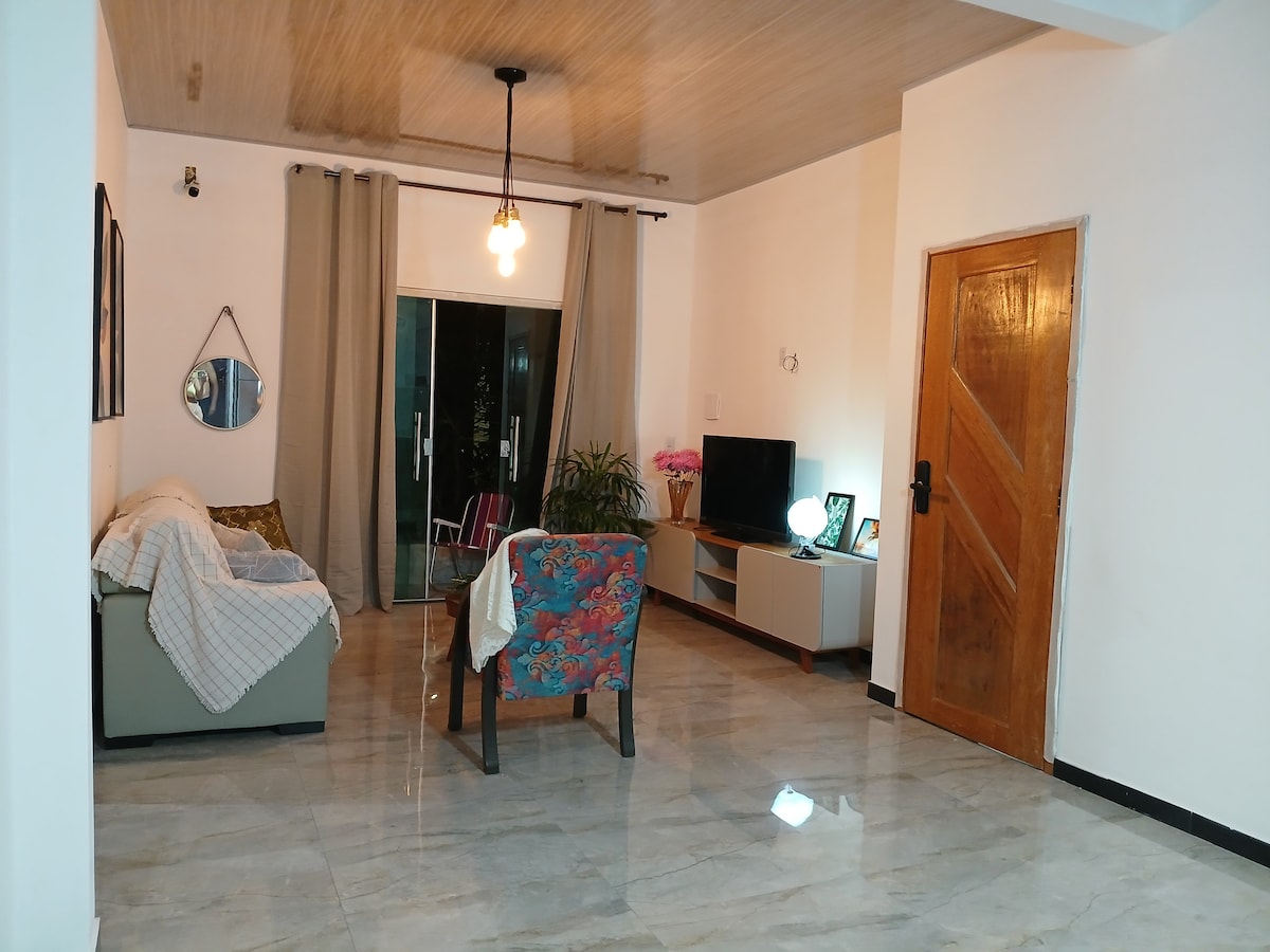A "Casinha" de hóspedes oferece acomodação completa e total privacidade. Cercado por plantas, é um refúgio tranquilo. O estúdio está situado entre a UFPA e a UFRA, com ponto de ônibus próximo e fácil acesso ao aeroporto, além da maioria dos complexos da COP 30. Garantimos que o espaço estará limpo e pronto para receber cada novo hóspede, oferecendo conforto e comodidade durante toda a estadia.