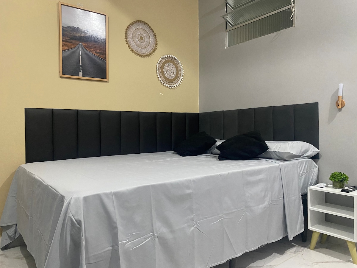 Essa kitnet foi pensada para quem busca praticidade e conforto em um espaço compacto e bem planejado. Tudo em um ambiente limpo, organizado, tranquilo e bem iluminado, ideal para relaxar depois de um dia na cidade. localização privilegiada, bem no centro da cidade ! Próxima de tudo o que você precisar no dia a dia. Supermercados, praças, lavanderias, igrejas, bancos, shopping, comércio, feiras, Hangar( centro de convenções). Podendo ir a pé ou 5 a 7 minutos de Uber.