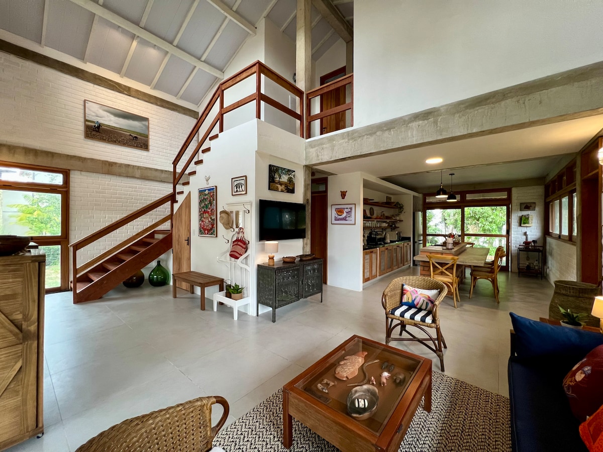 Procurando um refúgio encantador? Esta casa estilo chalé é perfeita para você e sua família. Localizada em um ambiente tranquilo e cercada pela natureza, oferece conforto e aconchego Estilo Chalé: Aconchegante e rústica Piscina Privativa: Ideal para se refrescar Quartos confortáveis, sala e cozinha equipada. Varanda com vista e natureza ao redor Ar-condicionado, TV, Wi-Fi Bairro seguro, próximo a duas praias, mercados e restaurantes.
