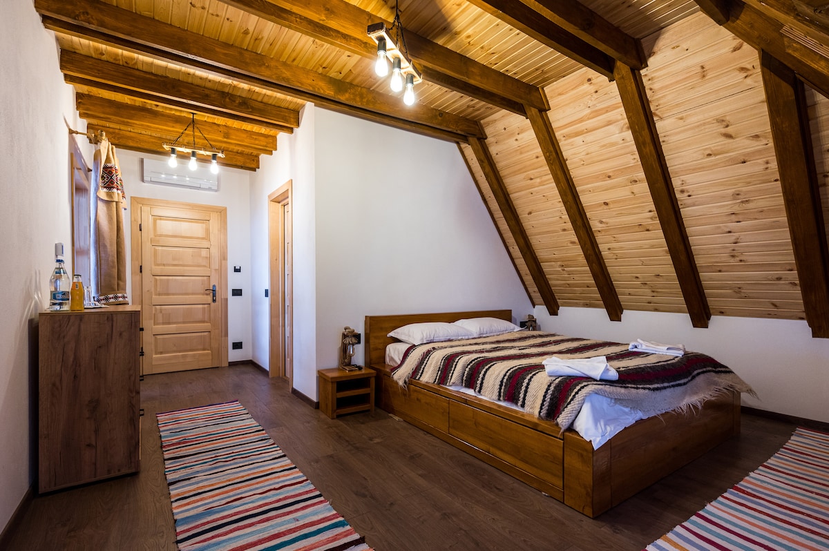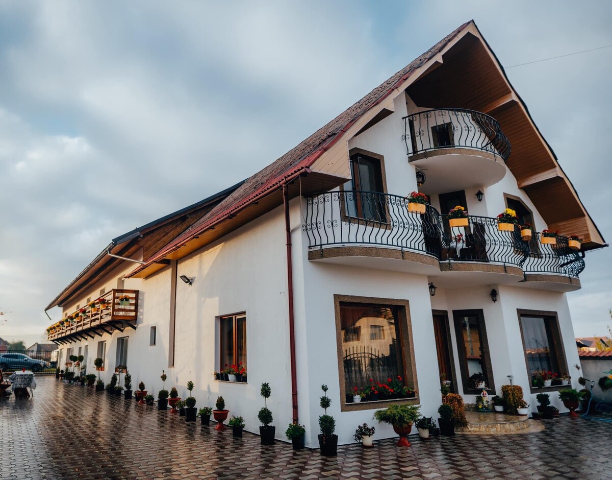 Breakfast included. An authentic Maramures experience with modern comforts, premium facilities and family touch. The food we serve is made from local ingredients by centuries-old recipes. Conveniently located close to most touristic attractions, it is the perfect place to explore the area. As the sun sets, after having discovered the amazing county of Maramures, you can relax in the outdoor hot tub, taking in the breathtaking views or savouring a glass of wine from our cellar near the fire pt.