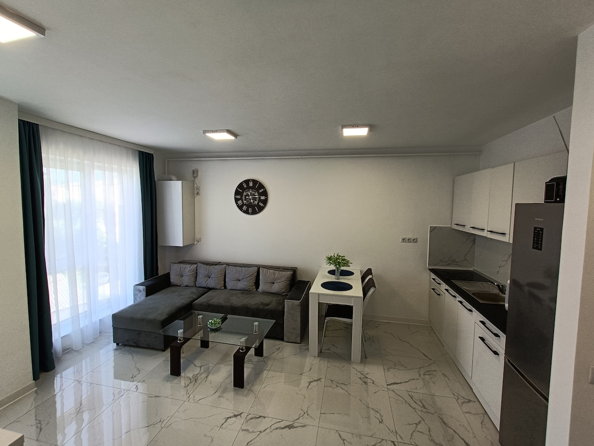 Inchiriez apartament spațios cu 2 camere in regim hotelier.Apartamentul este situat intr un complex rezidential nou cu o arhitectura moderna si finisaje de calitate superioara. Apartamentul este recent finisat si mobilat avand bucatarie echipata cu frigider plita ceramica pe inductie ,cafetiera ,masina de spalat ,cuptor cu microunde,televizor smart UHD .Mentionez ca apartamentul dispune si de loc de parcare securizat in curtea imobilului