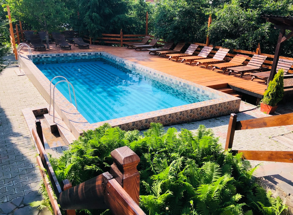 You won’t forget the peaceful surroundings of this rustic destination. The bungalow is part of a complex in which the guests have access to a kitchen, barbecue and an outdoor pool. Aslo guests can book a rustic hot water hotube