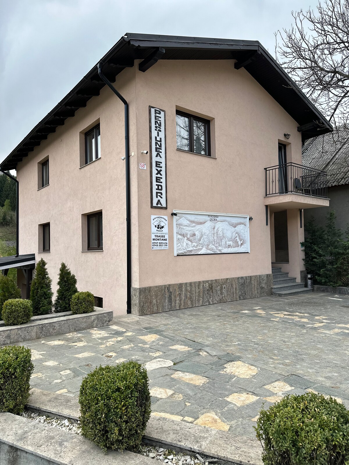 UNITATEA DE CAZARE ȘI FACILITĂȚI Pensiunea are o capacitate de 10 persoane și pune la dispoziția oaspeților: -5 dormitoare duble, cu băi proprii -Living spațios -Bucătărie complet utilată -Foișor -Grădină -Terase -Zonă de relaxare -Parcare proprie -Ciubăr și saună -Sală de jocuri(biliard, tenis de masa, fotbal de masa etc) -Biciclete -Spațiu de joacă pentru copii