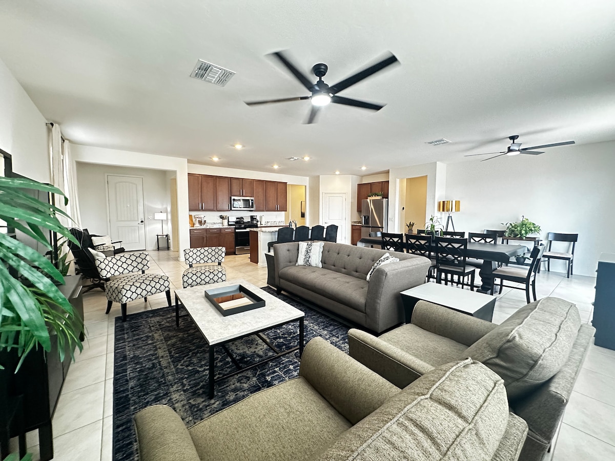 Welcome to Laurel Oasis! Escape to our beautiful 3-bedroom retreat in Dove Mountain, featuring a private backyard with a saltwater pool and breathtaking desert views. Relax in the spacious living areas with stylish décor or step outside to soak in the Arizona sun by the pool. Enjoy stunning sunsets over the mountains, a fully equipped kitchen, and comfortable bedrooms perfect for families & groups. Close to hiking, golf and local dining, this home is the ideal getaway for relaxation & adventure.