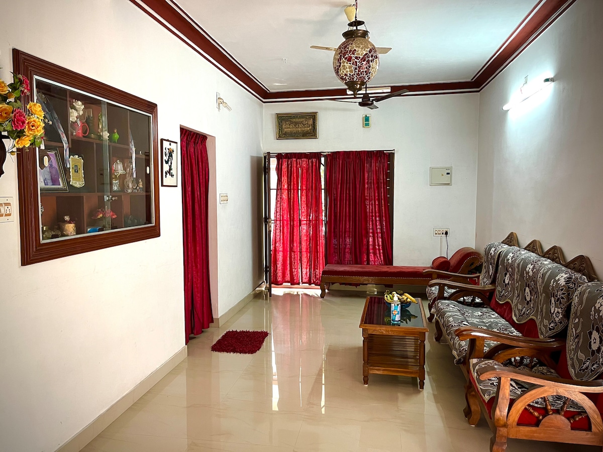 Enjoy a peaceful stay near beautiful river far from city lights Experience authentic Kerala village life and cuisine with loving family. All these while enjoying amenities like Fast WIFI and power backup. HIGHLIGHTS: Free and Fast WI-FI + Power backup. Kitchenette. Authentic and healthy Kerala food. Yoga and meditation classes. Village walk/cycle trails Swim in the river Laundry service. Home conveying a sense of unity beyond boundaries.