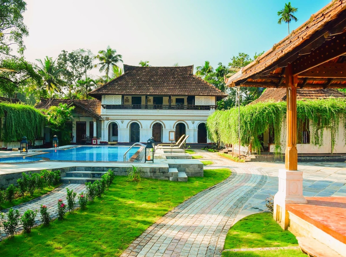 Relax with the whole family or friends at this peaceful place to stay with Pool.Excellent location.Homely and tasty food available.Very clean and neat place.Entire property is for bigger groups.For small group we give particular rooms or area based on number of guests.For eg 2 guests one room 3 guests one room plus extrabed , 4 guests 2 rooms like that.We can arrange houseboat stay also at extra payment .Water sports activilities are available very close to property