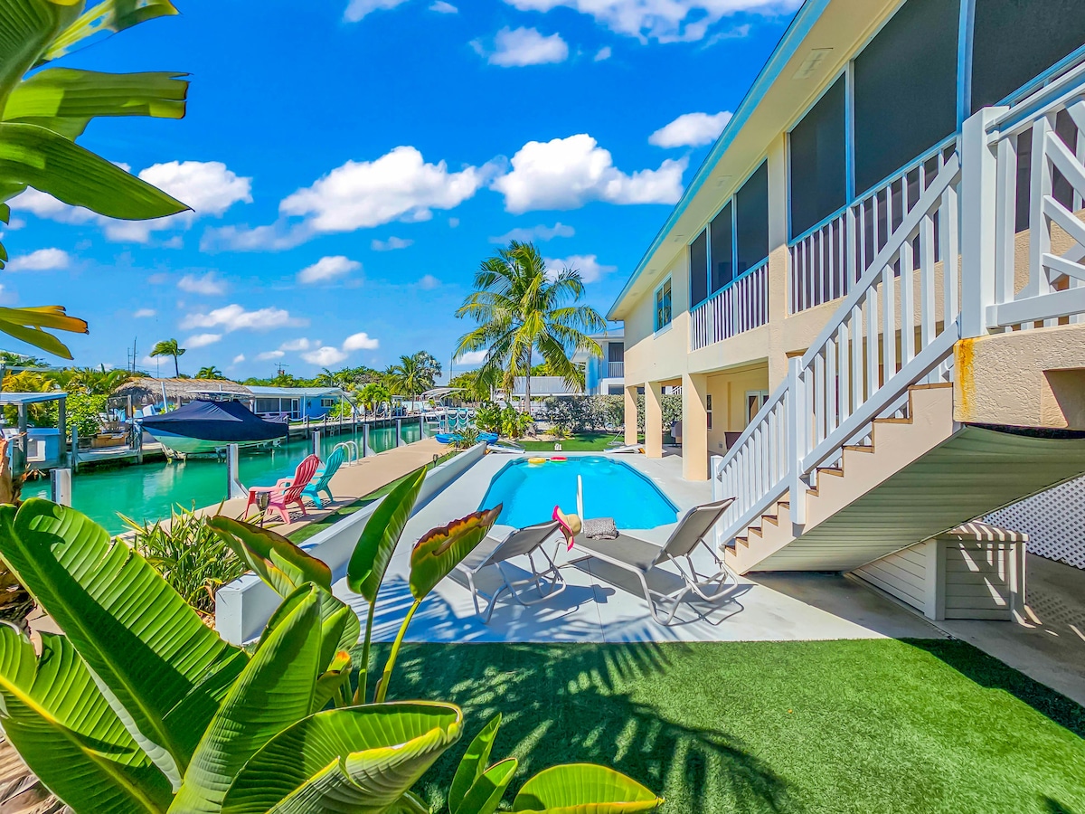 This 2 bedroom, 2 bath home has been beautifully updated inside and out. Located oceanside, canal front in Marathon, the heart of the Keys. The outdoor living space of this home boasts a downstairs game room, tropical tiki-hut and fabulous heat optional private pool and spa*. - Maximum Occupancy: *5 guest (includes adults and children of any age) *Accommodates 4 adults + 1 child (*children of any age, including infants, count toward occupancy)