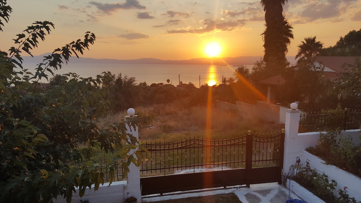 Our vacation home is ideally situated in the south of the Peloponnesos, with breathtaking views of Kalamata and the Messinian bay. The house comfortably accommodates up to 8 guests, making it perfect for families or friends. It contains 4 bedrooms and 2 modern bathrooms which offer convenience and privacy. Modern kitchen with a dishwasher and a washing machine. A wonderful garden full with fruit trees and cozy patio for outdoor dining and stargazing. There's a wood stove and SmartTV with Disney+