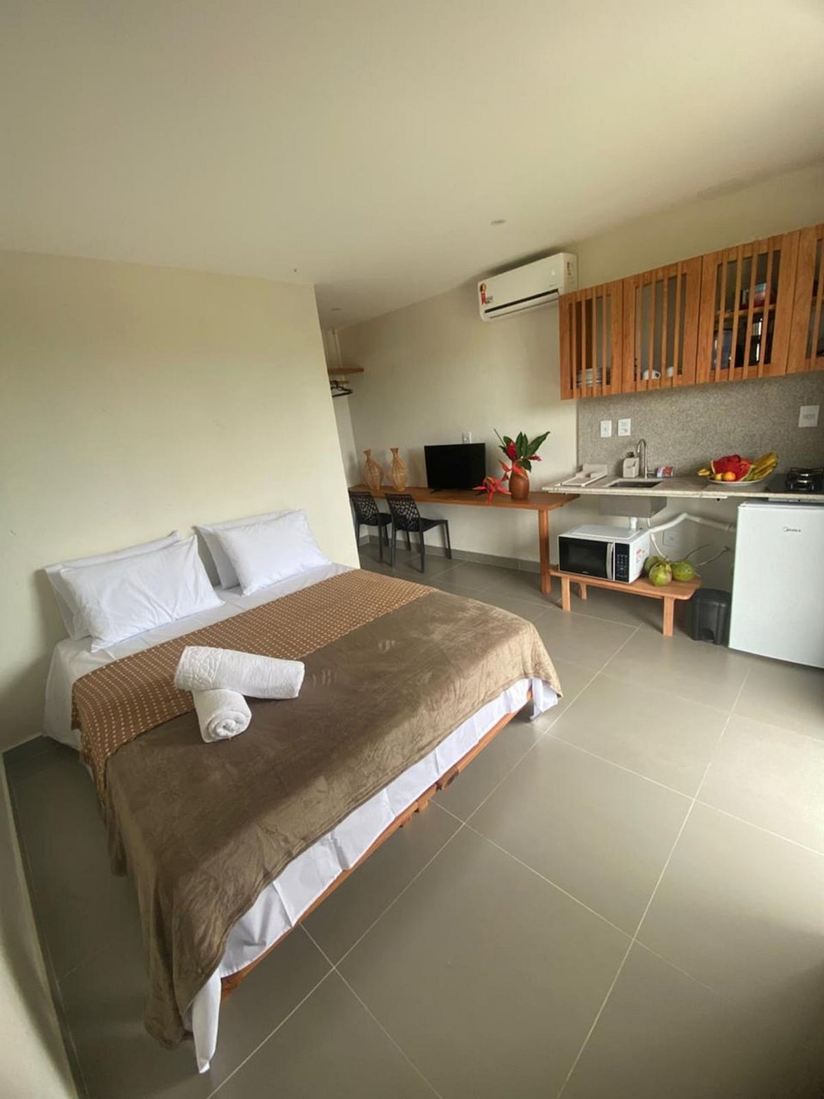 Apartamento perto da praia e da vila – Barra Grande, Maraú Aproveite o melhor de Barra Grande neste apê super bem localizado, ideal para quem vai sem carro! Fica a poucos passos da praia e da vila, perto de restaurantes e lojinhas. O espaço conta com: 1 quarto de casal 2 banheiros sociais Cozinha completa Sofá-cama na sala Acomoda até 4 pessoas, com conforto e praticidade para curtir dias incríveis na Península de Maraú.