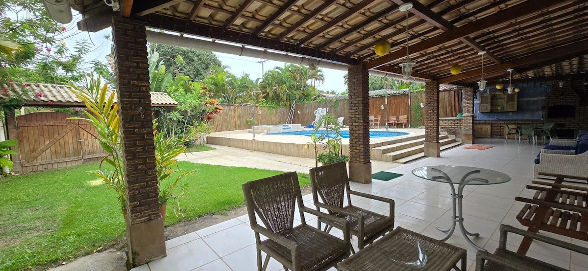 Todas as nossas casas possuem seus espaço individual, assim como a casa, a jacuzzi, a área gourmet p churrasco, pátio, varanda é usufruído apenas pelo locatário cada casa é separada.Possuem cada seu pátio, seu jardim, sua jacuzzi, e área gourmet p/ churrasco, lugar calmo, seguro e central. Oferecemosa possibilidade de todos usufruírem de vir a Barra, preparar suas refeições, tudo por valor bem mais acessível, pertinho de tudo. Camam foram trocadas por camas box. A pedidos.
