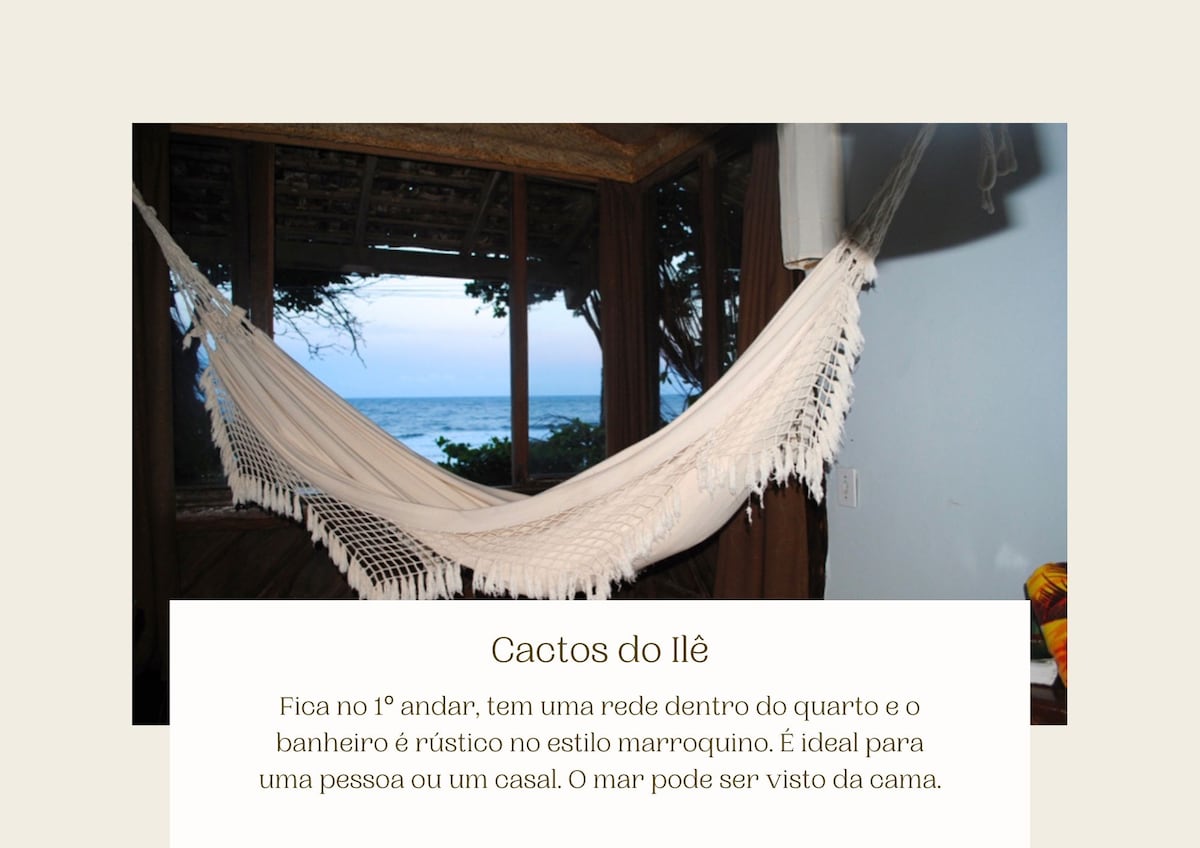LAUS Bangalôs Experience. A Praia de Algodões é um paraíso baiano ainda escondido na Península de Maraú. Localizado na principal rua de Algodões, combinamos o rústico com o sofisticado. Oferecemos bangalôs tecnológicos com práticas sustentáveis e preservação ao meio ambiente. Saindo da pousada já é possível ver a praia. Ficamos a menos de 150 metros da praia, em linha reta. Cada bangalô acomoda até 3 pessoas, sendo um casal com possibilidade de uma cama de solteiro adicional.