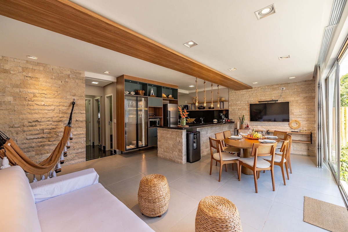 A CasaZen Bahia fica muito perto da praia (150m) e da vila (250m). Você vai amar o conforto em meio a exuberante natureza. Nossa casa tem quartos climatizados e banheiro privativo, camas muito confortáveis (2 queen size e 1 de solteiro) e cozinha completa. É um lugar tranquilo e aconchegante com jardim arborizado e gramado, pergolado de descanso, ducha externa e garagem coberta e fechada. É a sua casa na Bahia!