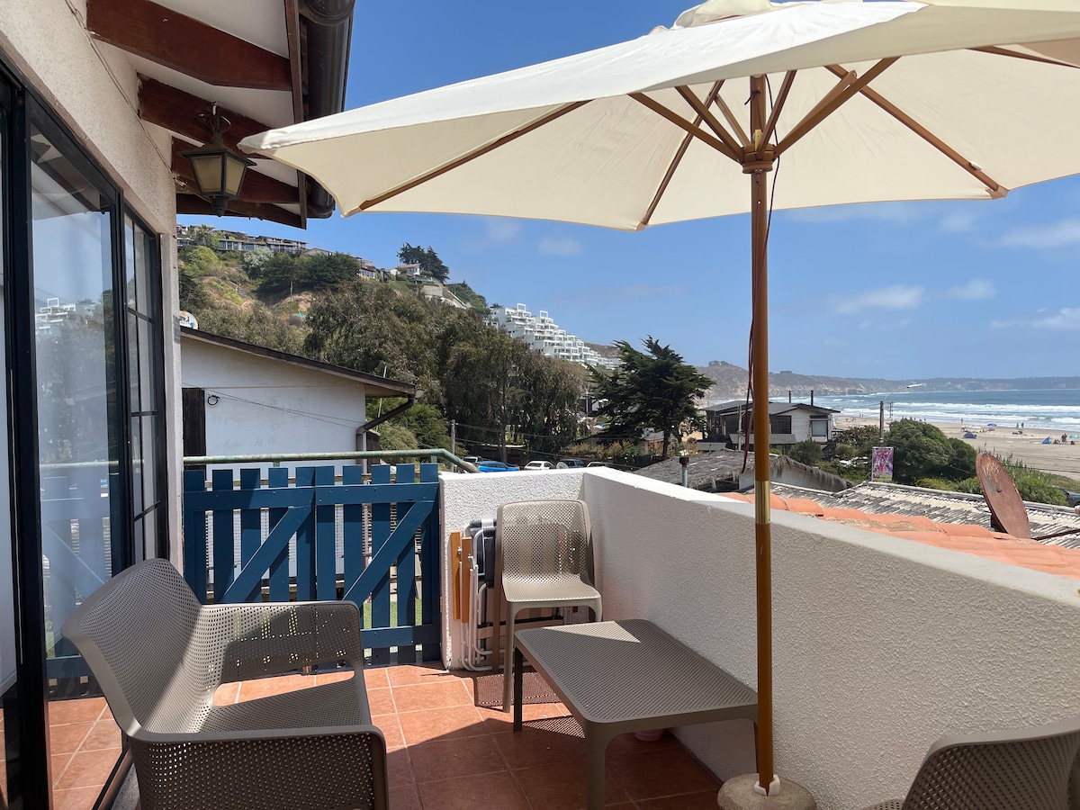 Lindísima, acogedora y amplia cabaña frente al mar en el mejor lugar de Maitencillo (2 horas de Santiago) muy bien equipada, se pueden hospedar hasta 9 personas cómodamente, condominio con piscina, quincho y estacionamiento privado. Terraza con vista al mar, living en terraza y playa en frente sin tener que cruzar una calle! Para disfrutar del mejor atardecer o pisco sour mirando a los niños sin que nadie interrumpa!! Condominio familiar se prohíben las fiestas!! Solo se arrienda por Airbnb.
