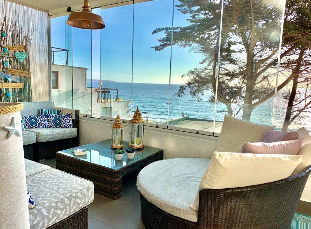 Cálido departamento en PRIMERA LINEA FRENTE AL MAR, con todo lo necesario para un relajo de fin de semana! Solo debes traer tu ropa y disfrutar de los hermosos paisajes al aire libre, bosque, playa, piscina, cancha de tenis, etc. Información importante: - El departamento cuenta con 1 cama super king. - Incluye sábanas (no toallas) - No se admiten mascotas. - No se admiten fiestas. - Acceso a la playa disponible desde fines de diciembre.