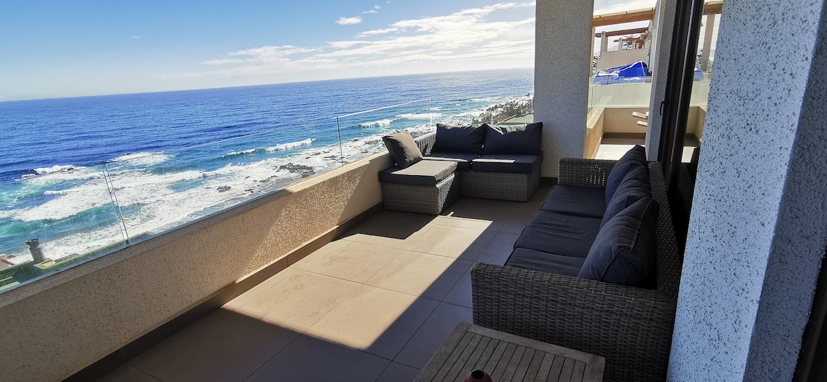 Zona muy turística, playas, surf, ciclismo, caminatas, cabalgatas, vida nocturna, restaurantes. Ubicación central, con acceso en ascensor a la playa Abanico, restaurantes, supermercado, iglesia y servicios. El departamento es nuevo, en primera fila, con una vista espectacular al mar. Está en primer piso y tiene terraza y jardín. 2 dormitorios en suite. Es ideal para parejas, aventureros y familias. Gran accesibilidad por transporte público, a 2 horas del aeropuerto de Santiago.