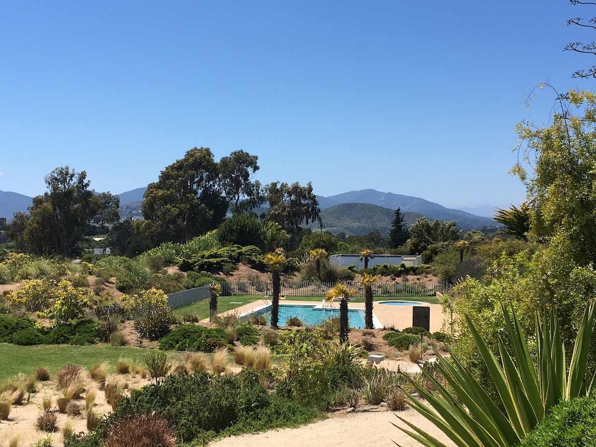Estupendo depto. en primer piso, luminoso y con amplia TERRAZA y JARDIN PRIVADO. Capacidad 7 personas, amoblado, cocina completamente equipada, Smart TV con wifi y direct TV, lavadora y secadora, pack & play, libros, juegos de mesa y terraza con parrilla y estufa exterior Piscina, juegos infantiles y extensas áreas verdes, bus acercamiento a playa de Maitencillo Estacionamiento privado y de visitas, seguridad 24 hrs. Club de golf, Padel, Hotel, restaurantes, supermercados y aventura en parapente