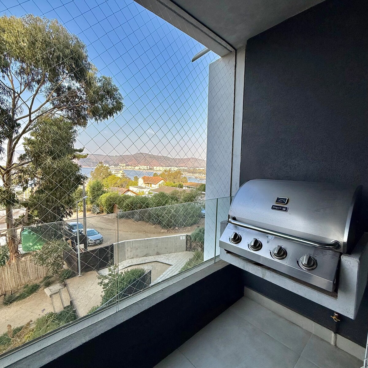 Stylish outdoor grill, view, tennis, security 24/7