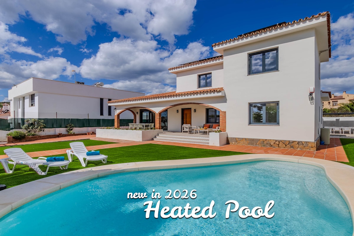 全新的别墅,可容纳20人,温水泳池9座面包车