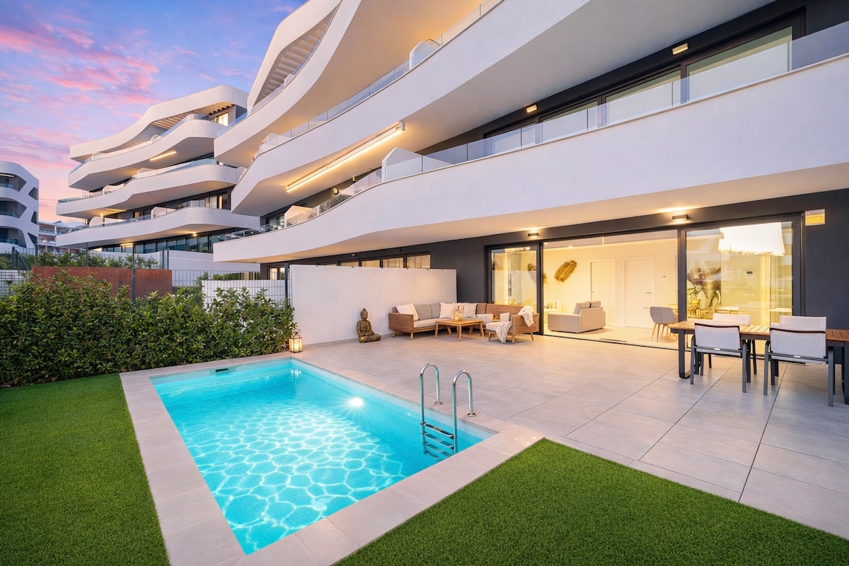 Revel in the comfort of this brand-new luxurious 2BR apt with beautiful facilities in the Cortijo del Golf retreat. Enjoy an elegant setting in an ideal location to explore the area and enjoy golf, beaches, tennis, spa, shopping and more! ✔ New (2021) 122 sqm apt ✔ Large Comfortable Beds ✔ Fully Equipped Kitchen ✔ 38 sqm Private Terrace ✔ High-Speed Wi-Fi ✔ 4K smart TV ✔ Wall-Wireless Sound System ✔ Beautiful Adult + Children Pool (seasonal) ✔ Gated Community ✔ Garage Parking Learn more below!