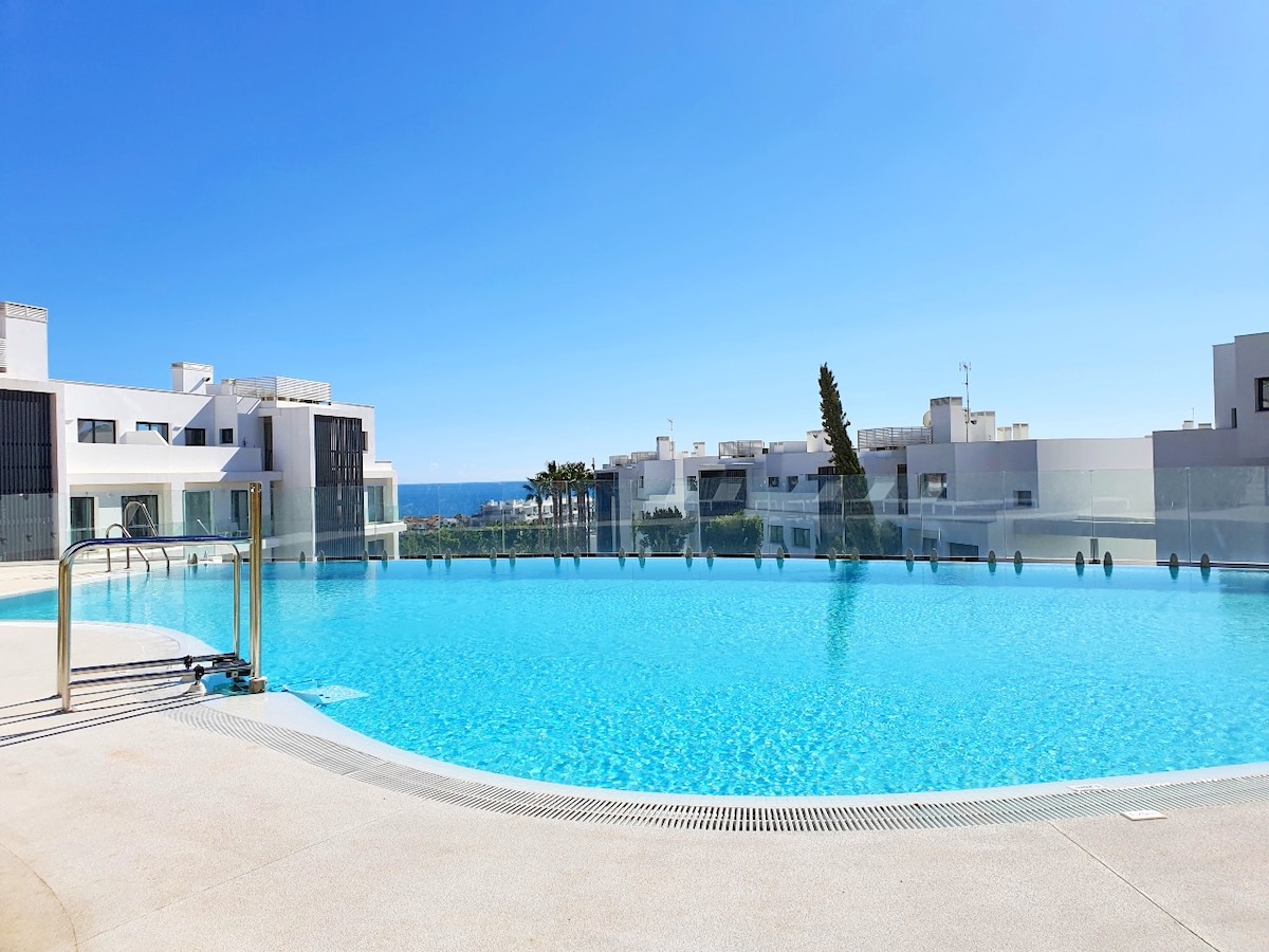 马贝拉宁静海景顶层公寓水疗泳池健身房