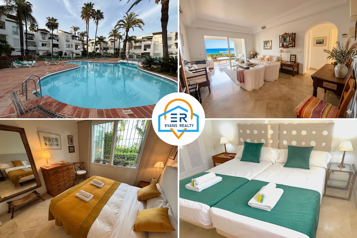 Fully renovated luxury 2 bedroom apartment with panoramic views . Located on one of the best beaches 5km east of Marbella. Beach Restaurante’s,chiringuito 2 min away walking! Supermarkets,tennis club,golf 3 min by car or walking. Also breakfast bars,Italian,bbq Restaurante’s,pizza 3 min walking. Parking on premises for free. Very comfy and beautiful decorated. Bedlinen,towels,beach towels included. Located in area with security. New kitchen with dishwasher,washing machine . AIRCO WIFI