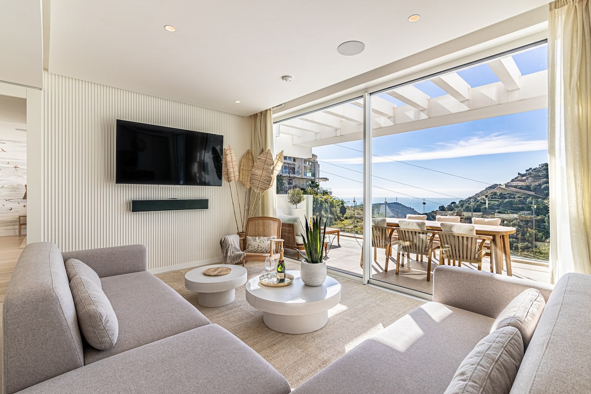 Our new, HIGHend apartment, just 8 minutes from Marbella's center. It offers sea views, creating a tranquil setting for your Spanish holiday. The apartment has Scandinavian elegance w/ clean lines, neutral tones, & minimalist design, creating a bright & sophisticated atmosphere for a memorable stay. Our guest can access the spa w/ heated pool, sauna & gym, all free of charge w/ fantastic sea views. The gym is well-equipped w/ top-line machines & the clubhouse adds a social element to the stay.
