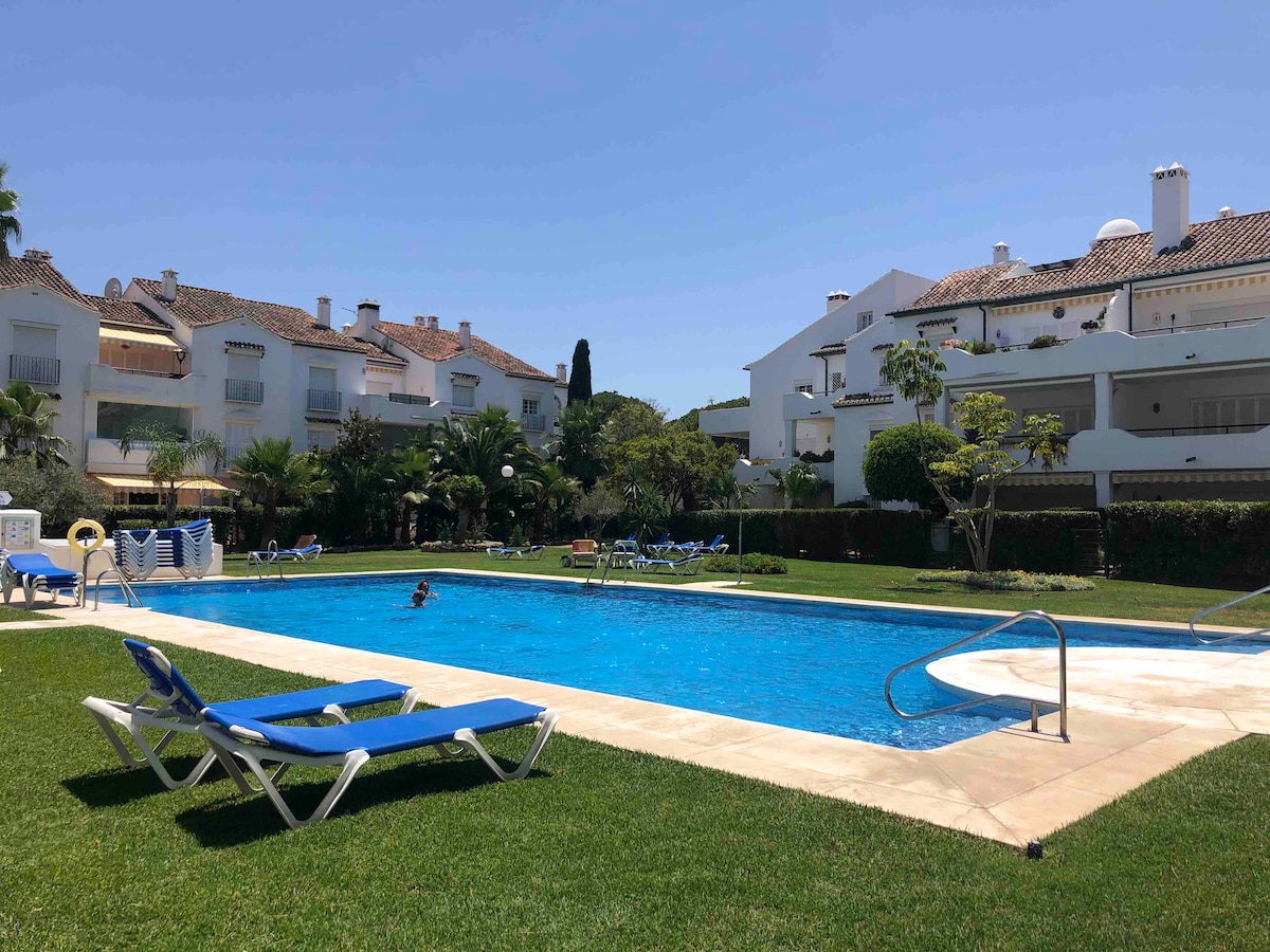 Solárium, piscina, cerca de puerto Duquesa y playa