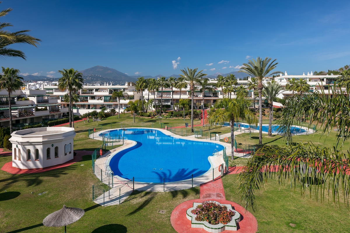 马贝拉独特。私人加热泳池。海景