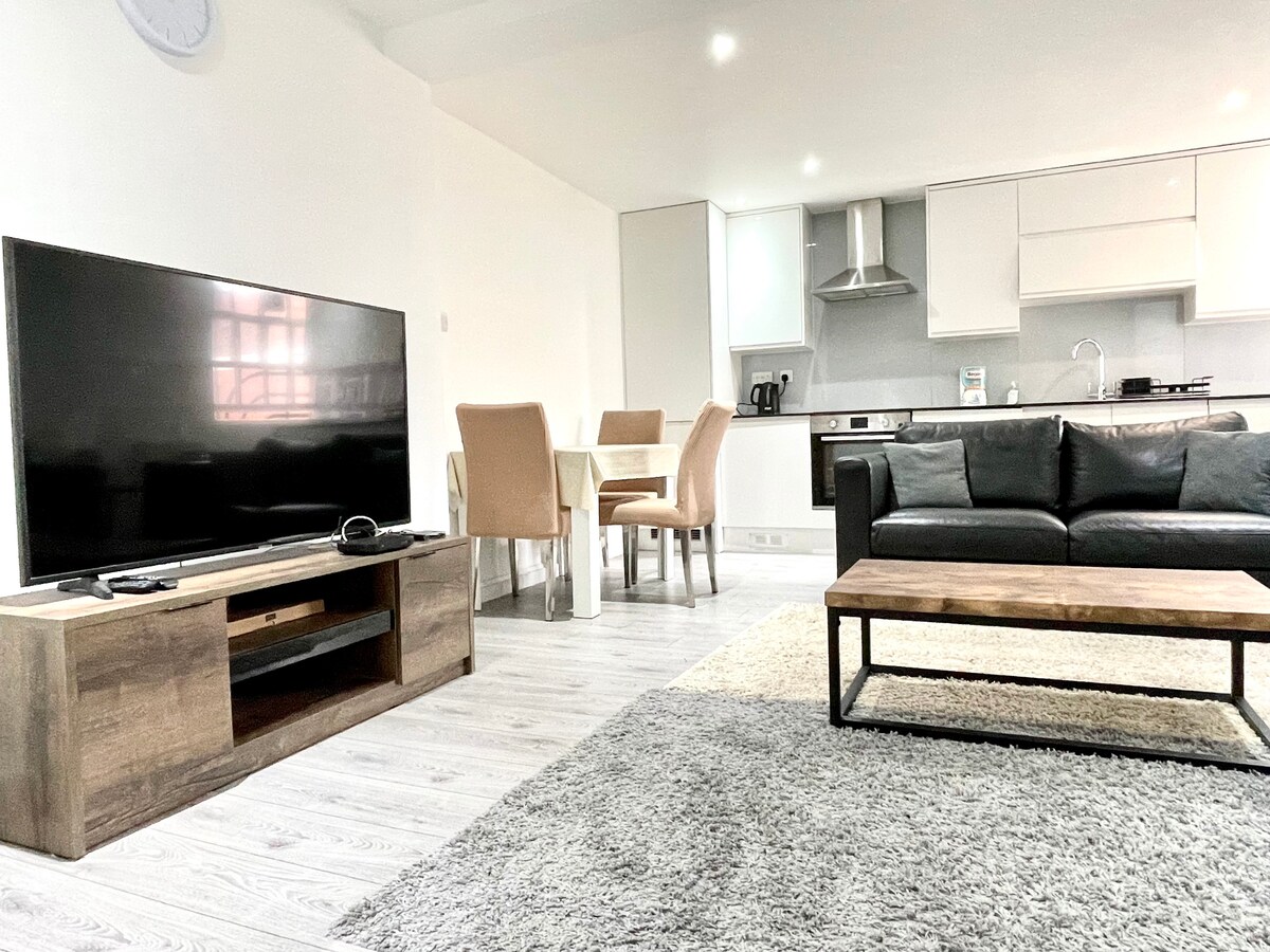 “The best place to stay in London!" Feedback from happy guest Complete with an open-plan kitchen, dining room and lounge area this apartment will never disappoint. There are 2 private bedrooms to accommodate up to 4 people and one of which has an en-suite bathroom. All rooms have excellent natural light and the apartment is accessible via a lift. Facilities include, fridge, flatscreen Sky TV, wifi, 2 x bathrooms, full cooking equipment. hairdryer and iron. Extra single bed available if required.