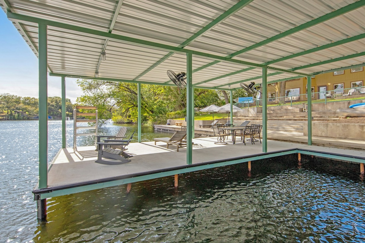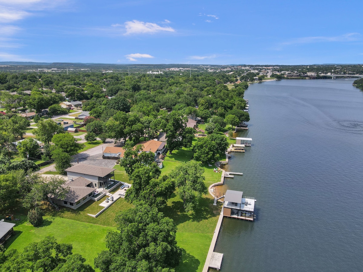 平均评分 5 分(满分 5 分),共 26 条评价林登·B·约翰逊湖畔的大蓝屋,带泳池和水疗中心(秋季特惠)