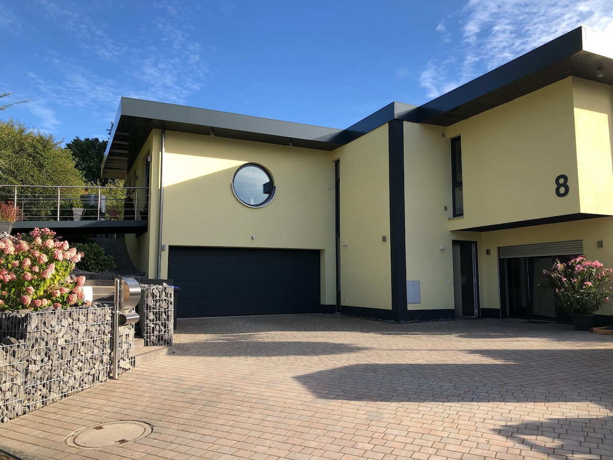 We are renting out the main part of a freshly renovated former school building. The house is ideal for relaxing, making music or for groups who have to work in the area of Weilburg. You can get to Frankfurt fair by car in about an hour. The house sports several bathrooms, toilets, a complete kitchen, Sat-TV, WLAN, a fireplace, a big conference room and 3 sleeping rooms for up to 8 people. The surrounding is very quiet. Air condition in two rooms. No smoking inside the house.