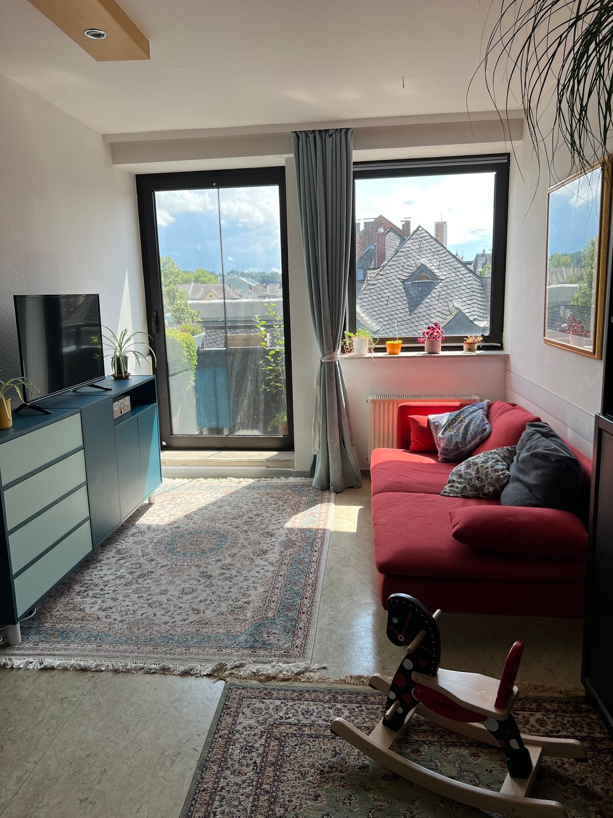 Euch erwartet eine einzigartige Lage und ein beeindruckender Panoramablick!!! Ihr bewohnt ein Dachstudio mit großem Panorama-Balkon und direktem Blick auf den Edersee. Bitte informiert Euch im Internet über den Pegelstand des Sees, die Wassermenge wechselt, auch im Sommer. Die Ruhe lädt zum puren Naturerleben ein. Euer Studio steht für sich, lediglich eine gemeinsame Innentreppe teilen wir uns. Die gesamte Umgebung ist ein Traum zum Wandern, Himmel bestaunen und träumen.