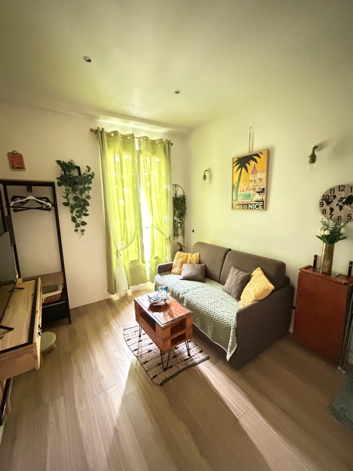Studio Cosy climatisé , en plein centre, très calme, avec literie de qualité. Refait à neuf en 2024, à 10 mn de la Place Masséna et de la plage. Les transports sont aux pieds de l’habitation. L’avenue est la plus commerçante de Nice. L'entrée vous mène sur la pièce principale, avec cuisine équipée. Une salle de douche avec WC. Le canapé-lit est adapté pour 2 couchages. Un espace rangement est conçu pour vos affaires. Nous sommes à votre disposition pour tous renseignements. Hervé et Kathy