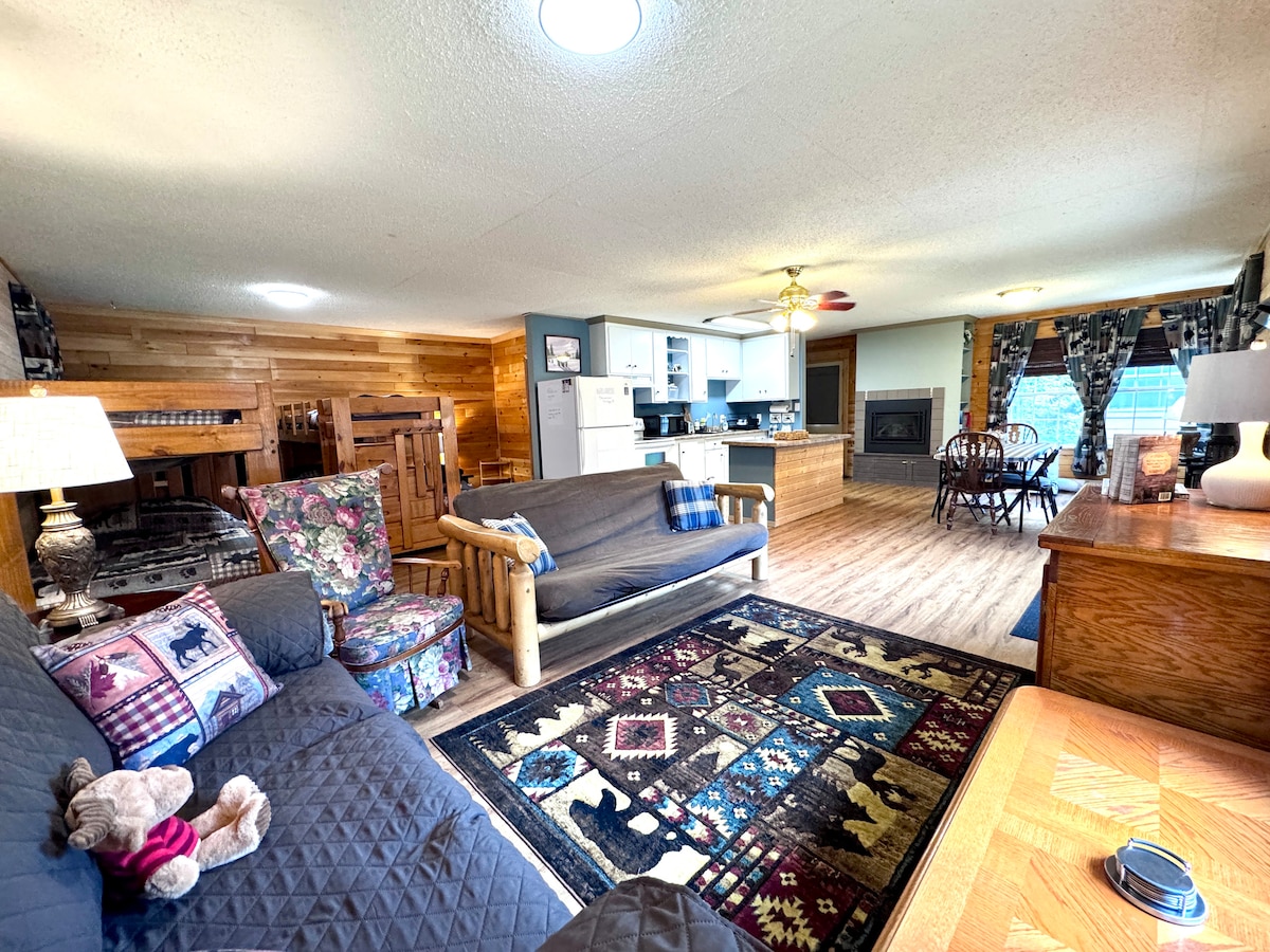 Escape to Aspen! Built in 2020, this cozy hand-scribed log cabin has gorgeous details & amenities YOU'LL LOVE! *2 Person Jetted Tub *Gas Fireplace *Wifi & TV *A/C *Dishwasher *W/D *Lake View & More! >>FREE Shared Resort Amenities (May-early Oct) *Sandy Beach *Kayaks *SUP Boards *Canoe, *Pedal Boat *Campfire Pit/Firewood >>Conveniently Located Near Restaurants-Cafes-Bars-Playground-Tennis-Golf-Scenic State Park-Unique Hiking Trails!