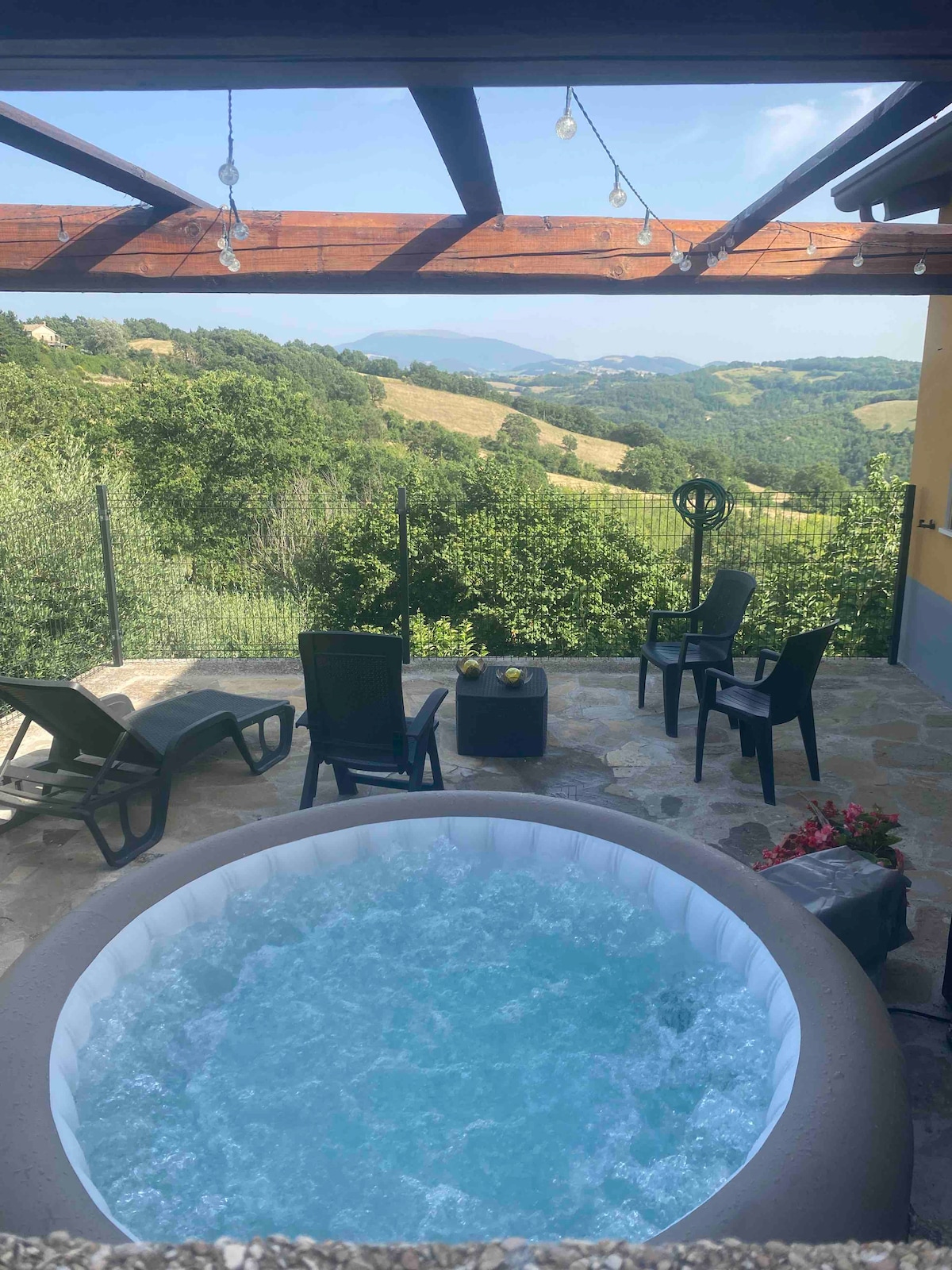 The hosts will be Stefano and Micaela CASA AMBROGI is located 650 m. on the hills of Valfabbrica between Gubbio, Perugia and Assisi and a 10 kms from Valfabbrica and a only 2 kms from little town Fratticiola S Surrounded by olive groves, fruits tree and wonderful green hills. You can have your meals outdoors on our verandah with wooden table and barbecue. Hydromassage pool also heated READ “HOUSE RULES” CAREFULLY BEFORE BOOKING Have a nice holiday Micaela and Stefano