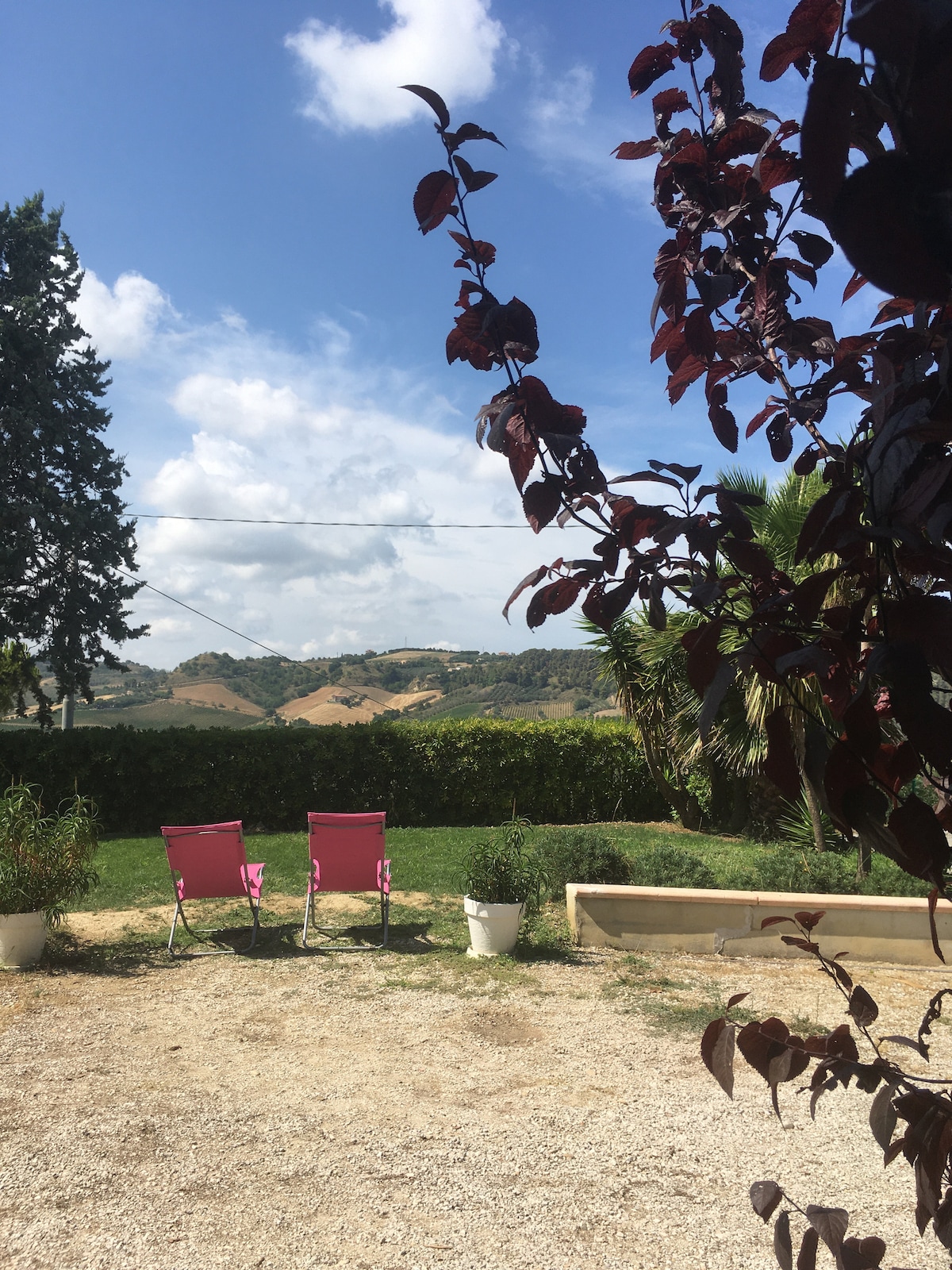 The suite is part of the family home but feels completely separate with its own entrance into a spacious living area overlooking the olive trees. The large private bathroom is a little gem, with its individually cut marble tiles making a chequer board effect, fresh & light, with a marvellous window done in brick work which plays a wonderful effect when the light pours in on hot summer days! A saltwater pool surrounded by fragrant rosemary to share with our family & friends with unspoilt views.