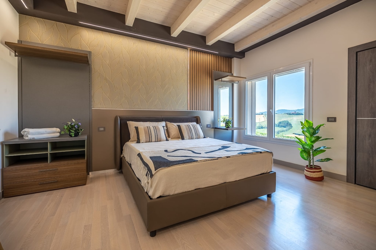 Nuova struttura affittacamere situata a Saludecio, realizzata in stile moderno ed elegante, pensata per offrire il massimo comfort in un ambiente raffinato e accogliente. La posizione è ideale: a soli 10 minuti dal mare di Cattolica e dalla splendida Riviera Romagnola La struttura si trova inoltre a soli 5 minuti dal casello autostradale di Cattolica, risultando comoda e facilmente raggiungibile. Un soggiorno all'insegna del relax, del comfort e della scoperta del territorio.